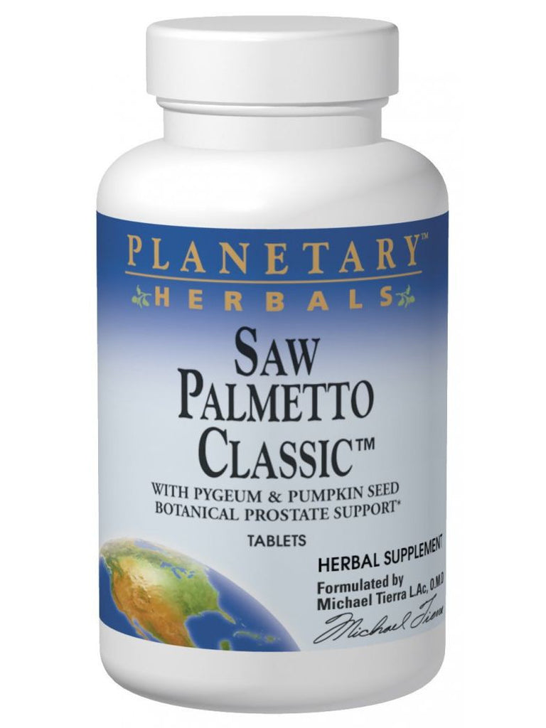 Planetary Herbals Saw Palmetto Classic is a comprehensive formula designed to support the prostate. This compound utilizes standardized and concentrated amounts of saw palmetto and pygeum along with pumpkin seed oil, a rich source of zinc which is necessary for prostate health. In addition, these are combined with other key botanicals known to support a healthy genitourinary system.