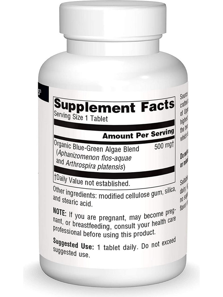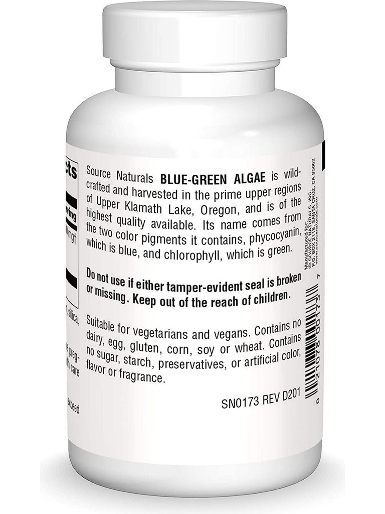 Source Naturals Blue-Green Algae is wildcrafted and harvested in the prime upper regions of Upper Klamath Lake, Oregon, and is of the highest quality available. Its name comes from the two color pigments it contains: phycocyanin, which is blue, and chlorophyll, which is green.