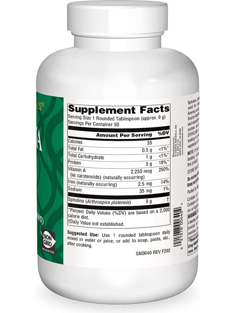 Spirulina (Arthrospira platensis) is a superfood that has been used for centuries by indigenous cultures of both Central America and parts of Africa. The beautiful blue-green algae in Source Naturals SPIRULINA is a source of vegan protein and contains naturally occurring nutrients that support a healthy immune system and provide antioxidant defense. Source Naturals SPIRULINA is non-GMO validated and suitable for vegans, making it a great option for anyone looking to supplement their vegetarian or vegan wellness with a plant-based approach.