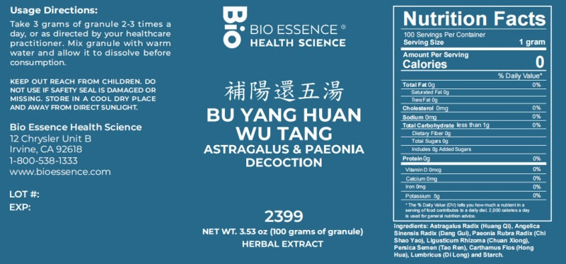 Bio Essence Health Science, Bu Yang Huan Wu Tang, Astragalus & Paeonia Decoction, Granules, 100 grams
