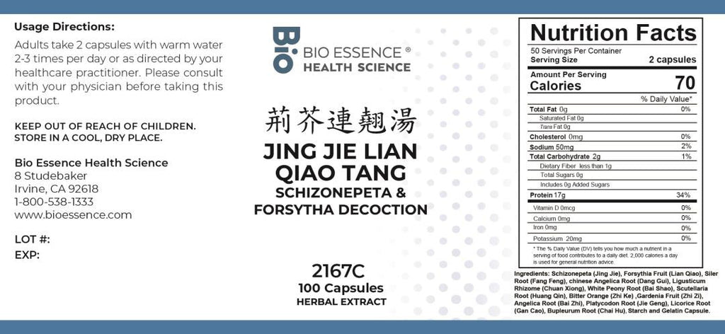 Bio Essence Health Science, Jing Jie Lian Qiao Tang, Schizonepeta & Forsytha Decoction, 100 Capsules