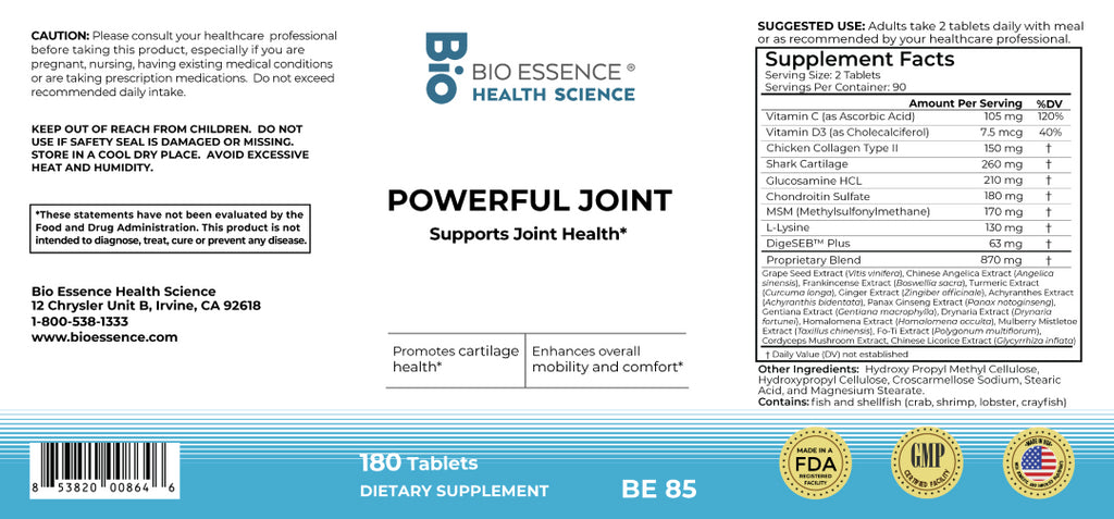Bio Essence Health Science, Powerful Joint, 180 Tablets
