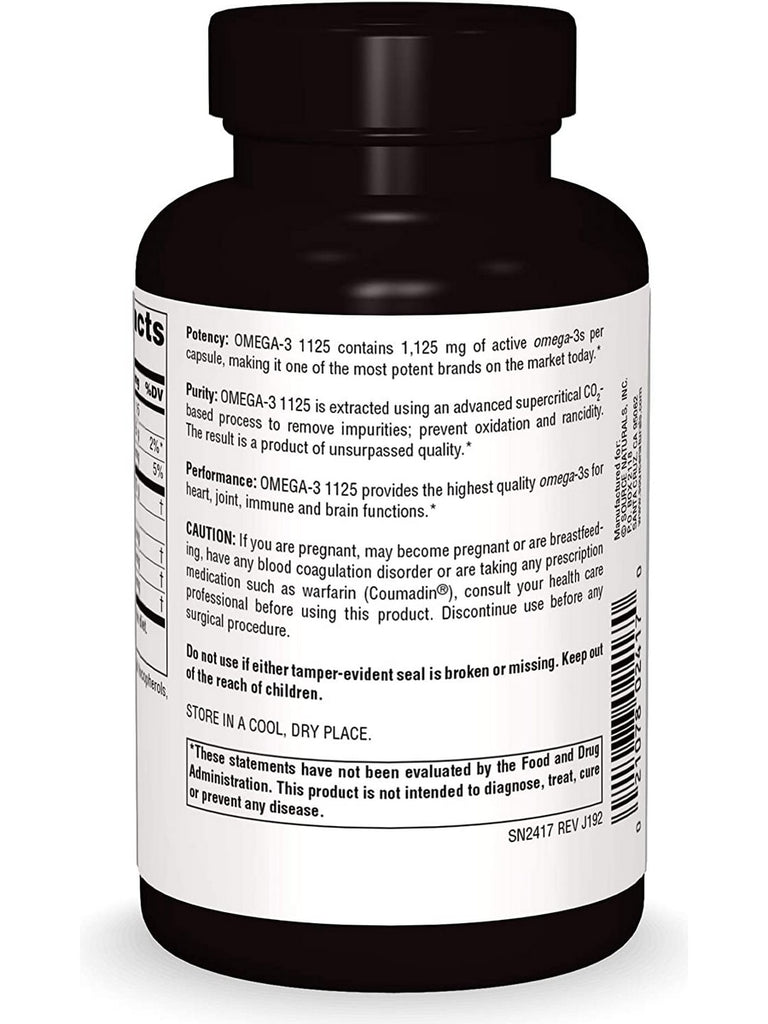 Potency: Omega-3 1125 contains 1,125 mg of active omega-3s per capsule, making it one of the most potent brands on the market today.