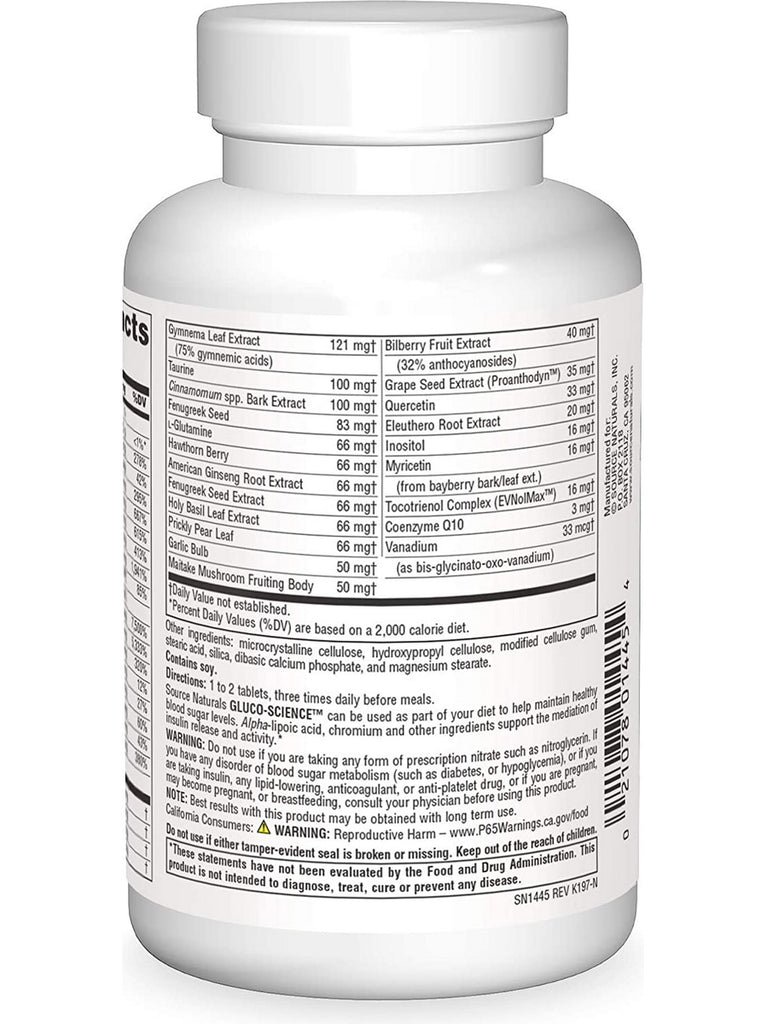 Source Naturals Gluco-Science™ can be used as part of your diet to help maintain healthy blood sugar levels. Alpha-lipoic acid, chromium and other ingredients support the mediation of insulin release and activity.