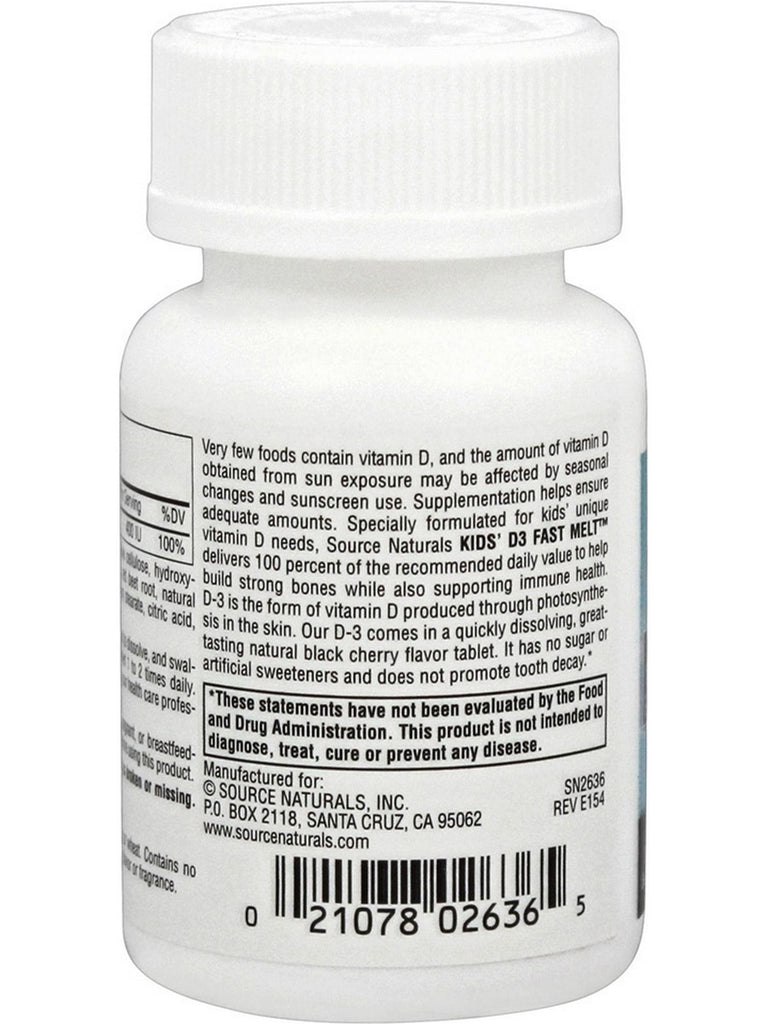 Source Naturals, Kids D-3 400 IU Black Cherry Fast Melt™, 100 tablets