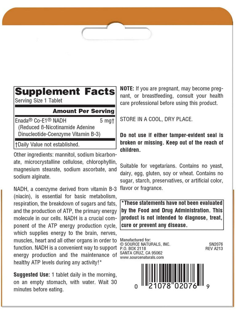 Source Naturals, NADH 5 mg, Enteric Coated, 30 tablets