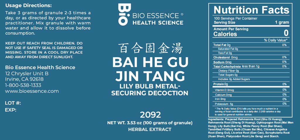 Bio Essence Health Science, Bai He Gu Jin Tang, Lily Bulb To Preserve The Metal Decoction, Granules, 100 grams