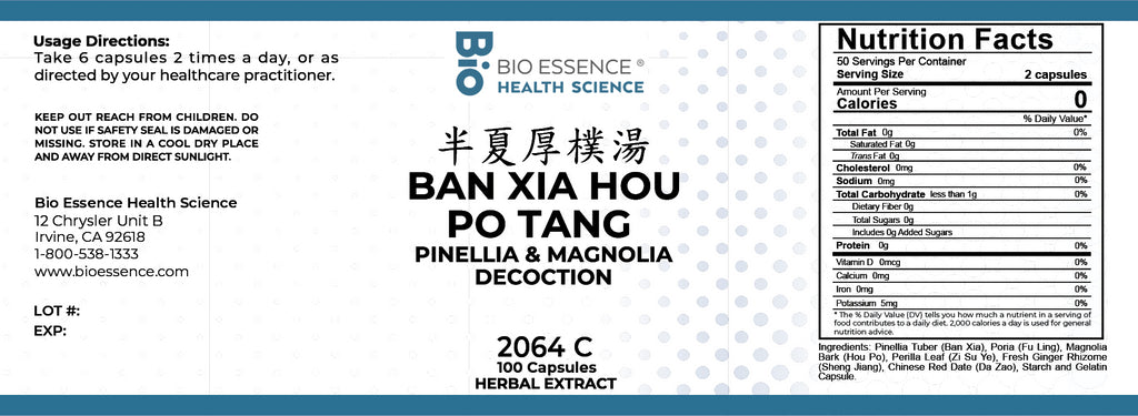 Bio Essence Health Science, Ban Xia Hou Po Tang, Pinellia & Magnolia Decoction, 100 Capsules