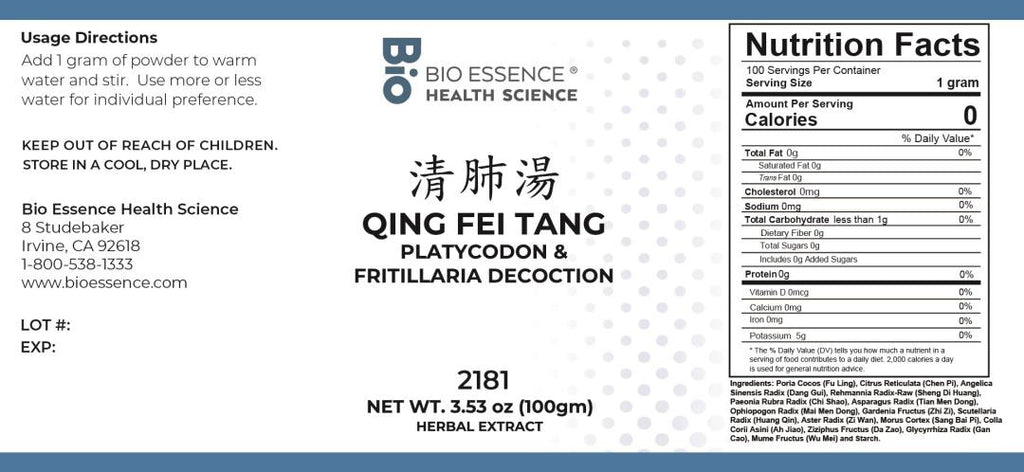 Bio Essence Health Science, Qing Fei Tang, Platycodon & Fritillaria Decoction, Granules, 100 grams