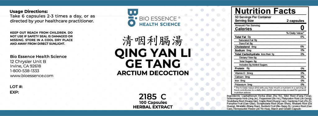 Bio Essence Health Science, Qing Yan Li Ge Tang, Arctium Decoction, 100 Capsules