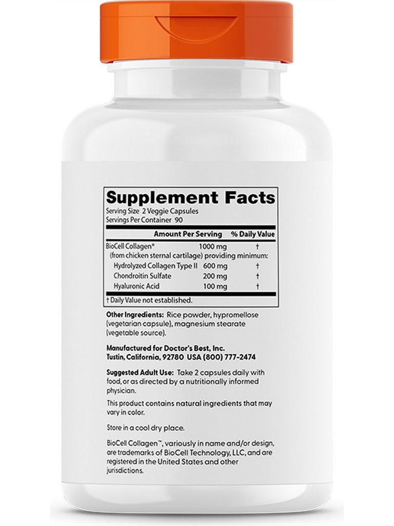 Best Hyaluronic Acid wth Chondroitin Sulfate contains patented BioCell Collagen II(US patents 6,025,327; 6,323,319; and 6,780,841). BioCell Collagen IIis sourced from chicken sternal cartilage and provides bioavailable, low molecular weight hyaluronic acid. It is standardized to contain 10% Hyaluronic Acid, 20% Chondroitin Sulfate, and 60% Collagen Type II.