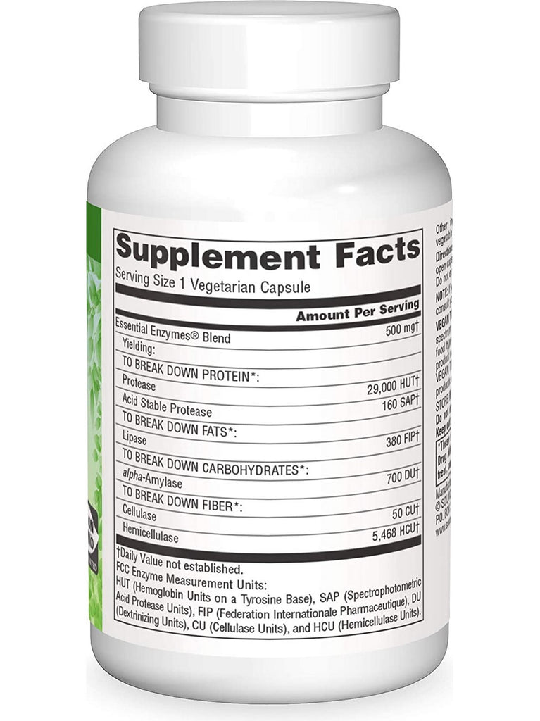 Source Naturals, Vegan True® Non-GMO Essential Enzymes® 500 mg, 45 vegetarian capsules