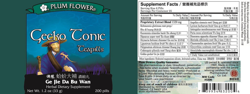 Plum Flower, Gecko Tonic Formula, Ge Jie Da Bu Wan, 200 ct