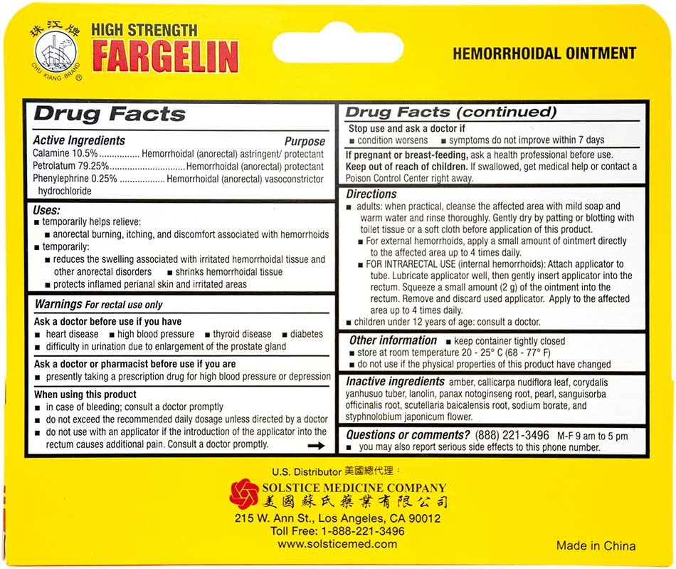 Solstice, High Strength Fargelin, Hemorrhoidal Ointment, 20 g