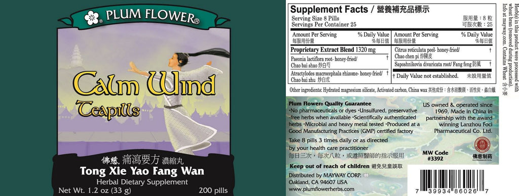 Plum Flower, Calm Wind Formula, Tong Xie Yao Fang Wan, 200 ct