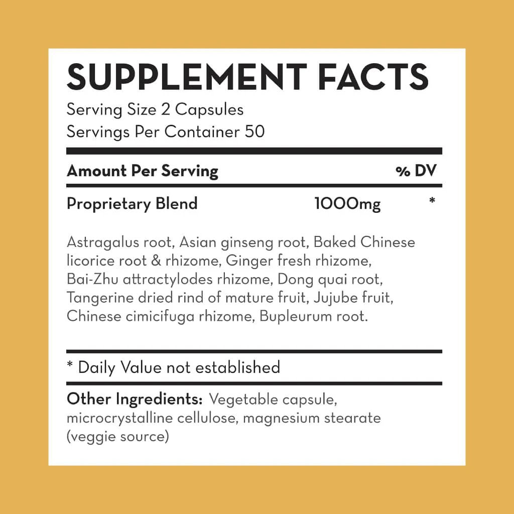 Ginseng and Astragalus Combination is a powerful formula to support depleted and rundown bodies, which have been caused by digestive issues, chronic needs, or a depleted immune system. According to Chinese herbal theory, this formula “Restores the Center, Supplements the Spleen and Stomach, and Elevates Qi.”