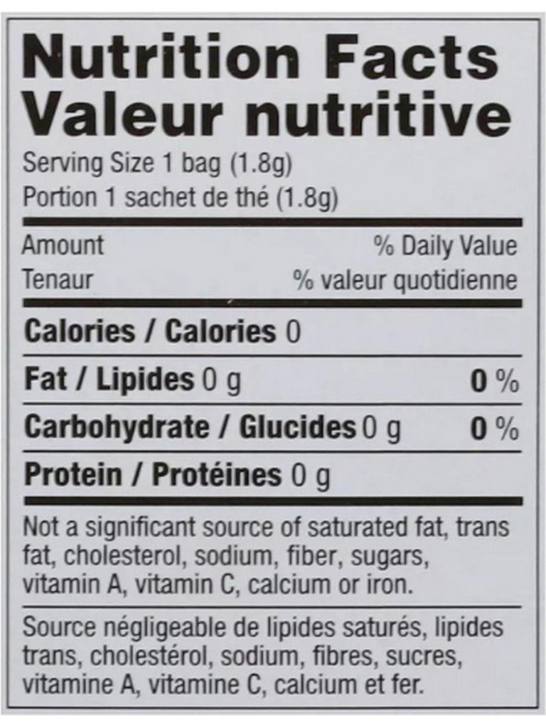 Hot Serving: Just before water comes to a full boil, pour over the tea bag and brew for 3 to 5 minutes, or to desired strength. Add desired sweetener to taste.
