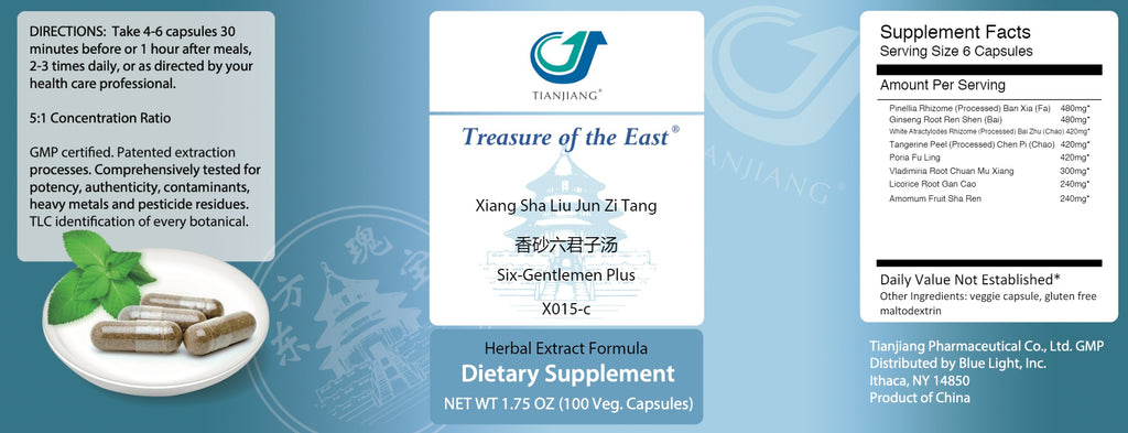 Treasure of the East, Xiang Sha Liu Jun Zi Tang, Six-Gentlemen Plus, 100 Vegetarian Capsules