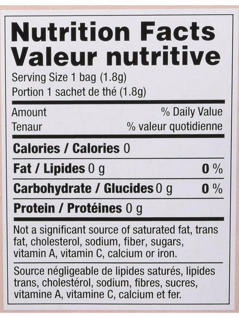 Hot Serving: Just before water comes to a full boil, pour over the tea bag and brew for 3 to 5 minutes, or to desired strength. Add desired sweetener to taste.