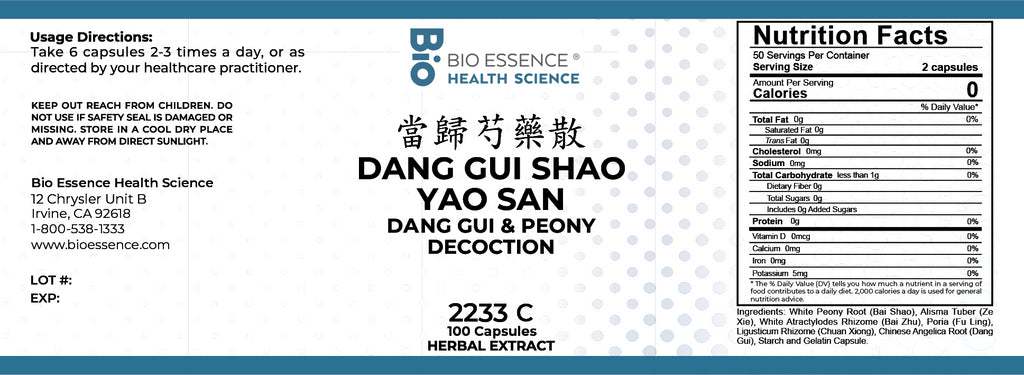 Bio Essence Health Science, Dang Gui Shao Yao San, Dang Gui & Peony Decoction, 100 Capsules