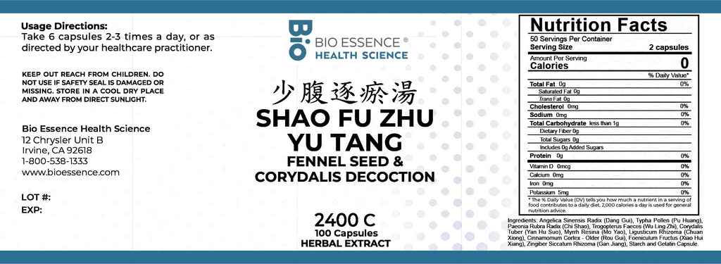Bio Essence Health Science, Shao Fu Zhu Yu Tang, Fennel Seed & Corydalis Decoction, 100 Capsules