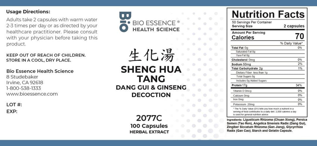 Bio Essence Health Science, Sheng Hua Tang, Dang Gui & Ginseng Decoction, 100 Capsules