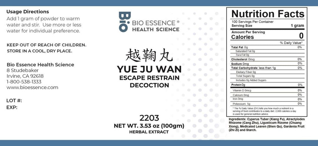 Bio Essence Health Science, Yue Ju Wan, Escape Restrain Decoction, Granules, 100 grams