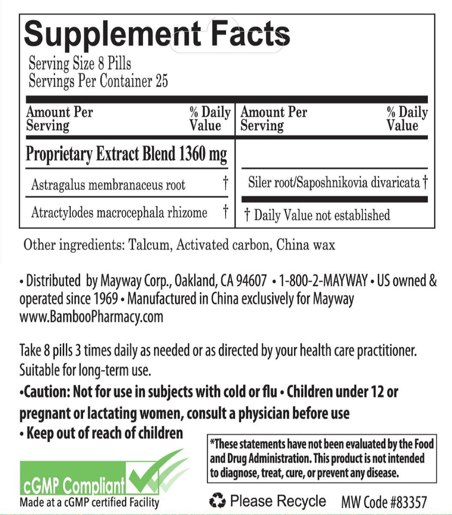 An essential addition to your seasonal medicine cabinet, let Immune System Support be part of your daily regimen to sustain a healthy lifestyle, particularly during times of stress or low-energy. An ancient formula in constant use since 1213 A.D., Immune System Support (also known as Yu Ping Feng San or Jade Windscreen) helps reinforce your body’s healthy immune system. Use it when healthy to build your body's defenses before an attack. The key ingredient, Astragalus root, is a powerful herb known for its revitalizing properties. Discontinue use if under attack and arm yourself with Winter Defense or Ban Lan Gen Chong Ji.
