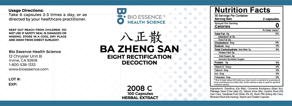 Bio Essence Health Science, Ba Zheng San, Eight Rectification Decoction, 100 Capsules
