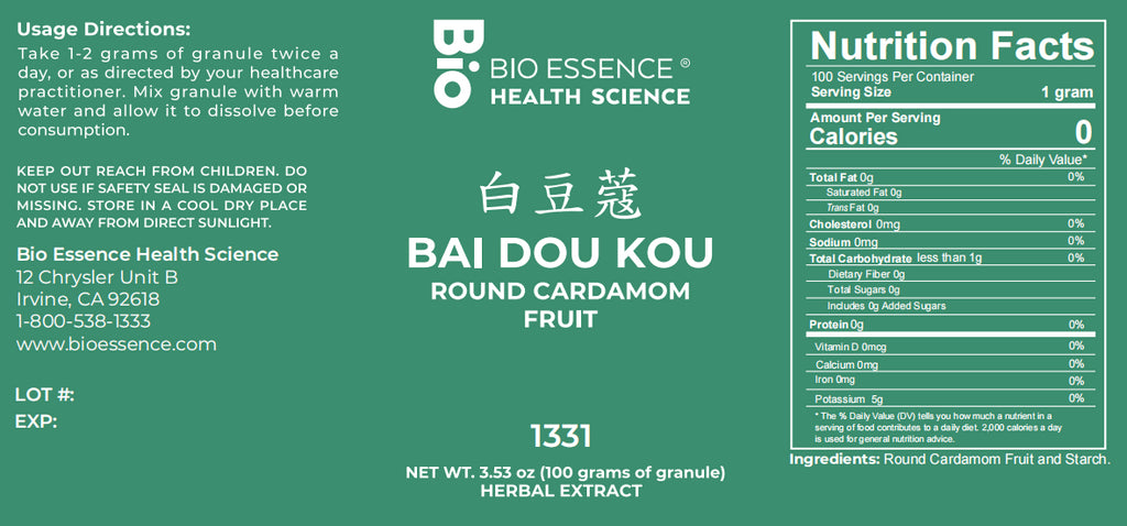 Bio Essence Health Science, Bai Dou Kou, Round Cardamom Fruit, 5:1 Extract Granules, 100 grams