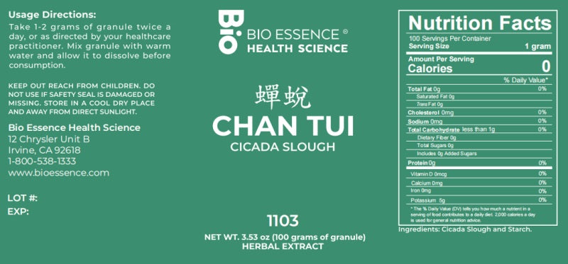 Bio Essence Health Science, Chan Tui, Ciccada Slough, 5:1 Extract Granules, 100 grams