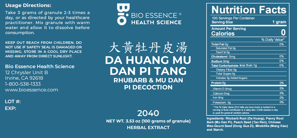 Bio Essence Health Science, Da Huang Mu Dan Pi Tang, Rhubarb & Moutan Decoction, Granules, 100 grams
