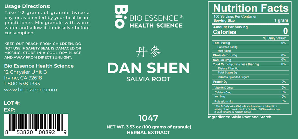 Bio Essence Health Science, Dan Shen, Chinese Salvia, 5:1 Extract Granules, 100 grams
