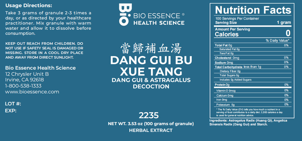 Bio Essence Health Science, Dang Gui Bu Xue Tang, Dang Gui & Astragalus Decoction, Granules, 100 grams