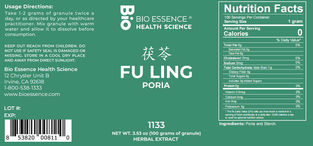 Bio Essence Health Science, Fu Ling, Poria, 5:1 Extract Granules, 100 grams