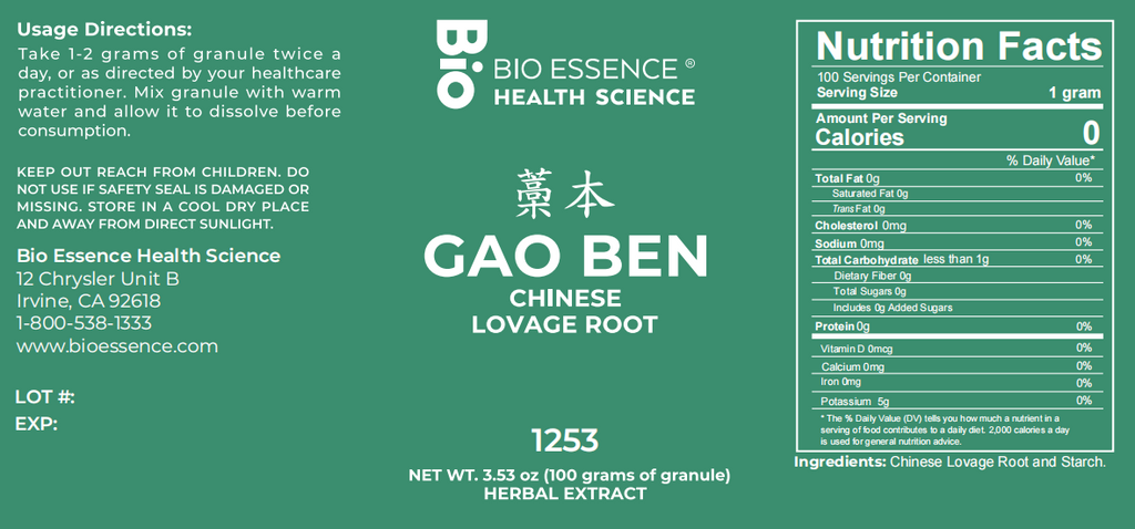 Bio Essence Health Science, Gao Ben, Chinese Lovage Root, 5:1 Extract Granules, 100 grams