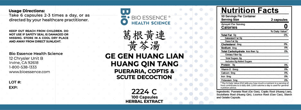 Bio Essence Health Science, Ge Gen Huang Lian Huang Qin Tang, Kudzu, Coptis & Scute Decoction, 100 Capsules