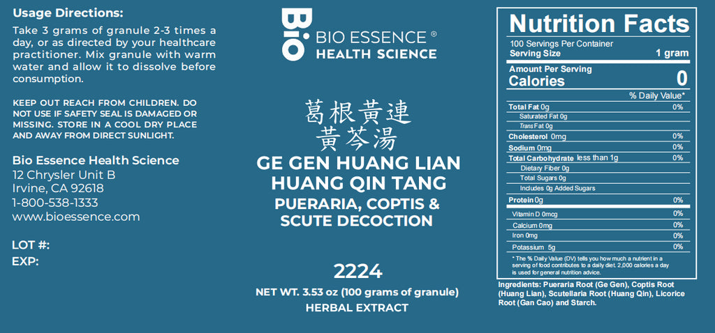 Bio Essence Health Science, Ge Gen Huang Lian Huang Qin Tang, Kudzu, Coptis & Scute Decoction, Granules, 100 grams