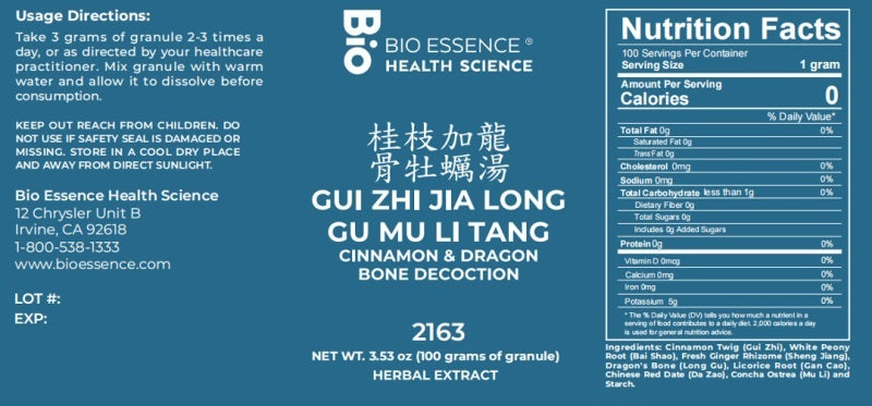 Bio Essence Health Science, Gui Zhi Jia Long Gu Mu Li Tang, Cinnamon & Dragon Bone Decoction, Granules, 100 grams