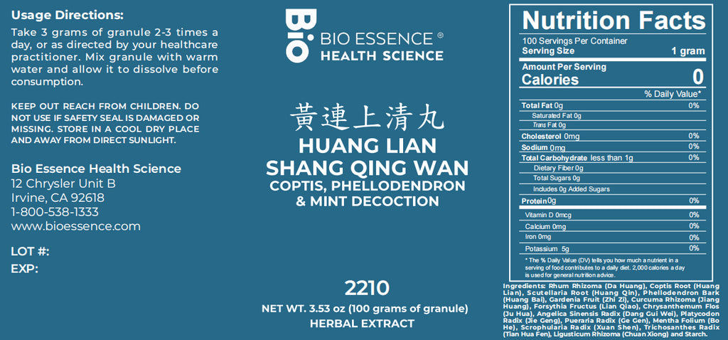 Bio Essence Health Science, Huang Lian Shang Qing Wan, Coptis, Phellodendron & Mint Decoction, Granules, 100 grams