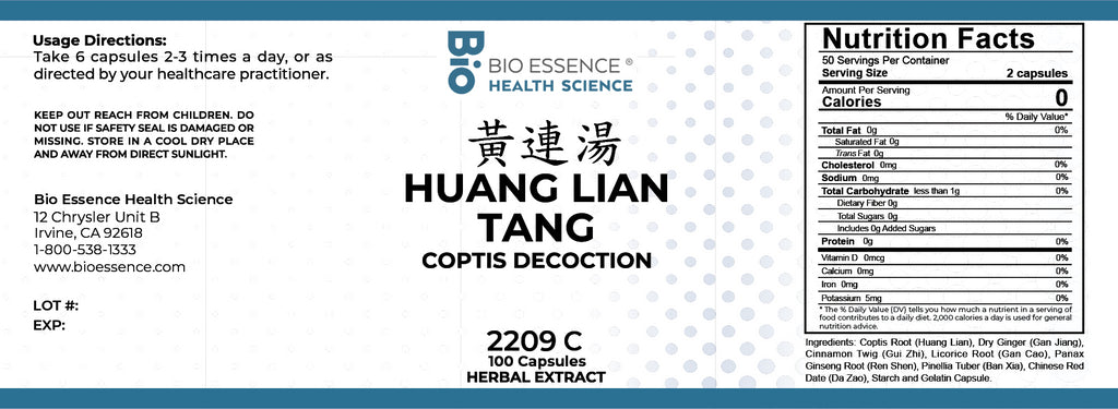 Bio Essence Health Science, Huang Lian Tang, Coptis Decoction, 100 Capsules