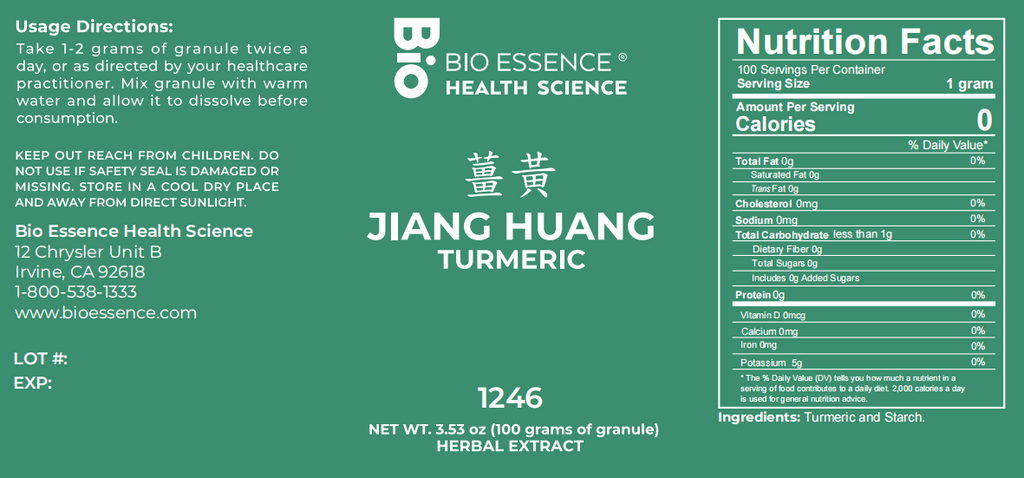 Bio Essence Health Science, Jiang Huang, Turmeric, 5:1 Extract Granules, 100 grams