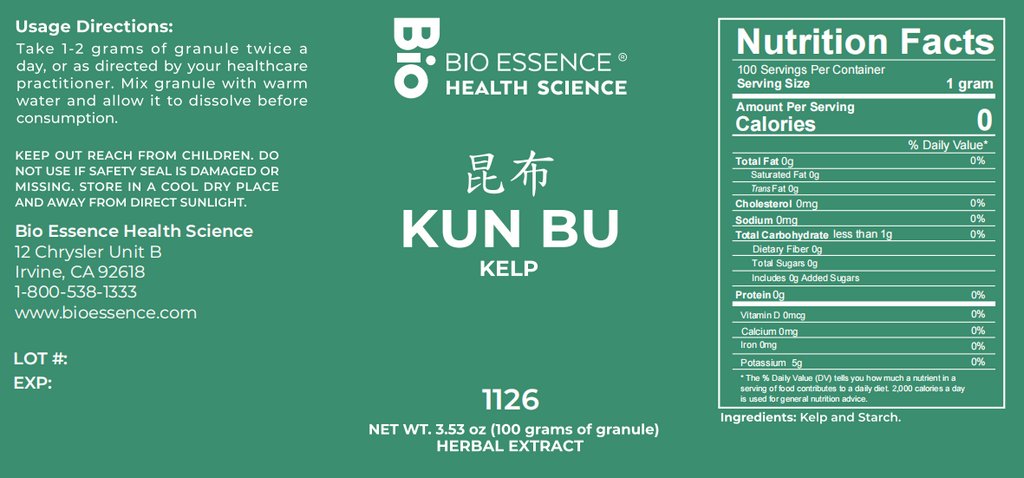 Bio Essence Health Science, Kun Bu, Eckloniae Thallus, 5:1 Extract Granules, 100 grams