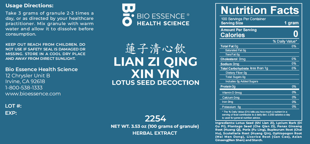 Bio Essence Health Science, Lian Zi Qing Xin Yin, Lotus Seed Decoction, Granules, 100 grams