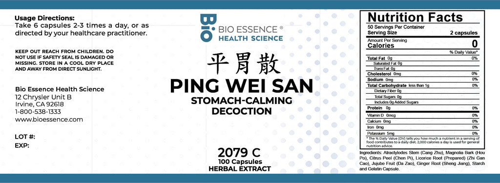 Bio Essence Health Science, Ping Wei San, Calm The Stomach Decoction, 100 Capsules