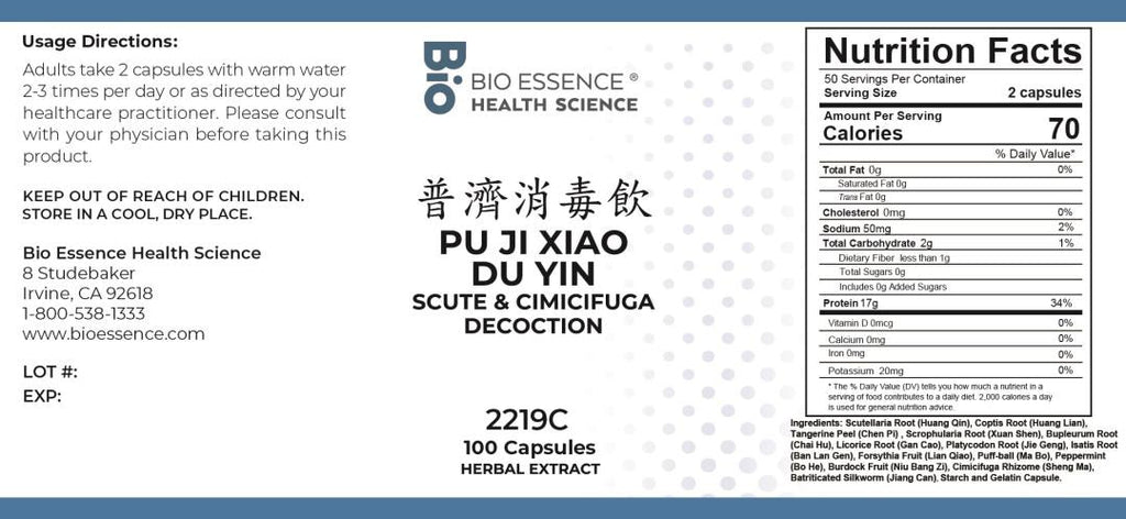 Bio Essence Health Science, Pu Ji Xiao Du Yin, Scute & Cimicifuga Decoction, 100 Capsules