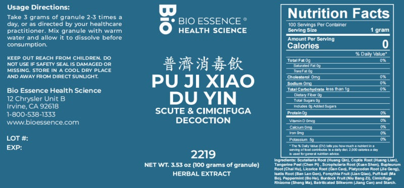 Bio Essence Health Science, Pu Ji Xiao Du Yin, Scute & Cimicifuga Decoction, Granules, 100 grams