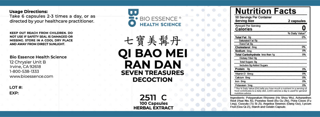 Bio Essence Health Science, Qi Bao Mei Ran Dan, Seven Treasure Decoction, 100 Capsules