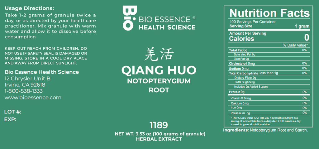 Bio Essence Health Science, Qiang Huo, Notopterygium Root, 5:1 Extract Granules, 100 grams