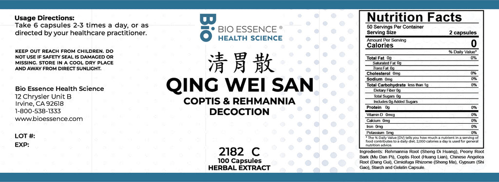 Bio Essence Health Science, Qing Wei San, Coptis & Rehmannia Decoction, 100 Capsules